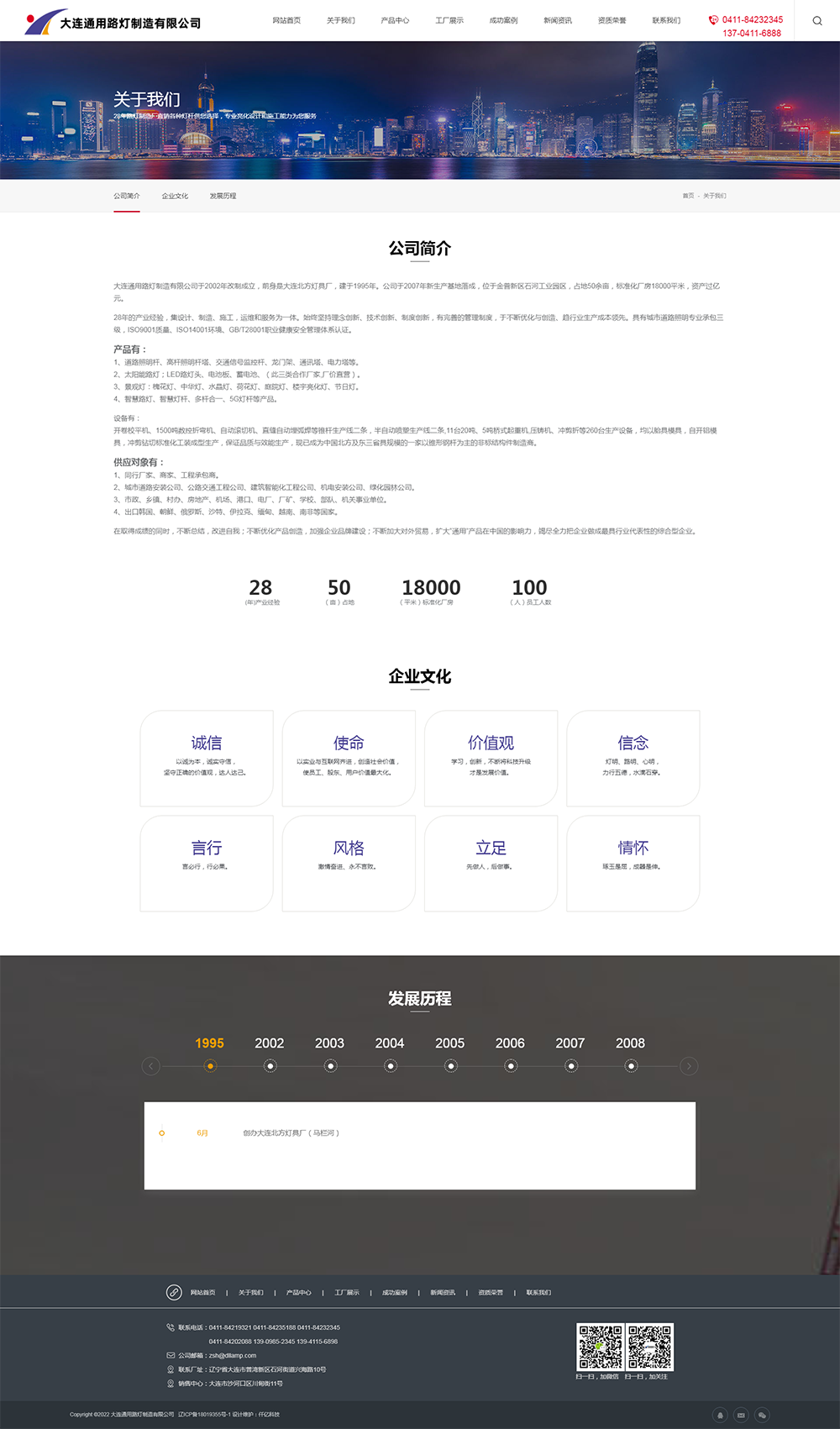 大連通用路燈制造有限公司于2002年改制成立,前身是大連北方燈具廠,建于1995年。公司于2007年新生產(chǎn)基地落成,位于金普新區(qū)石河工業(yè)園區(qū),占地50余畝,標(biāo)準(zhǔn)化廠房18000平米,資產(chǎn)過(guò)億元。