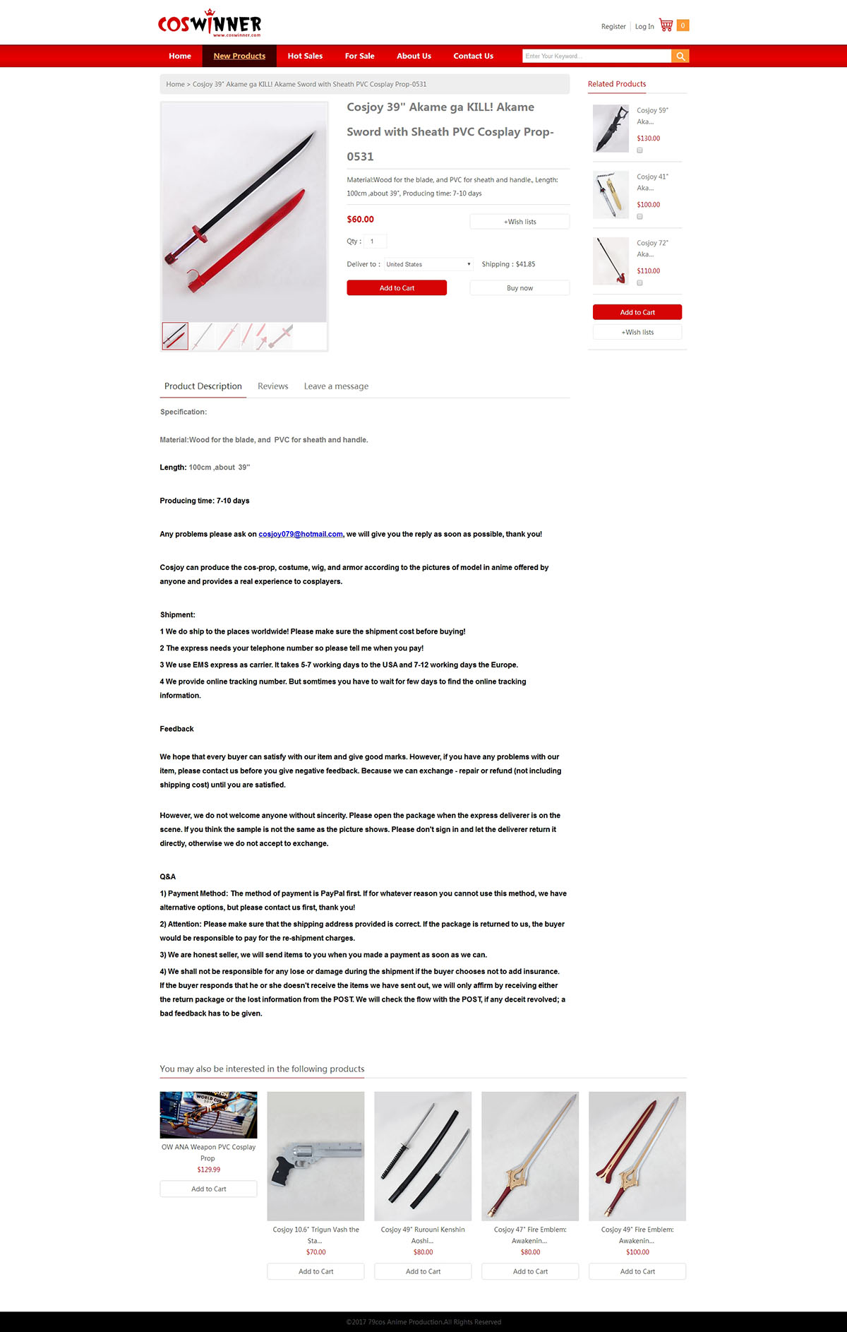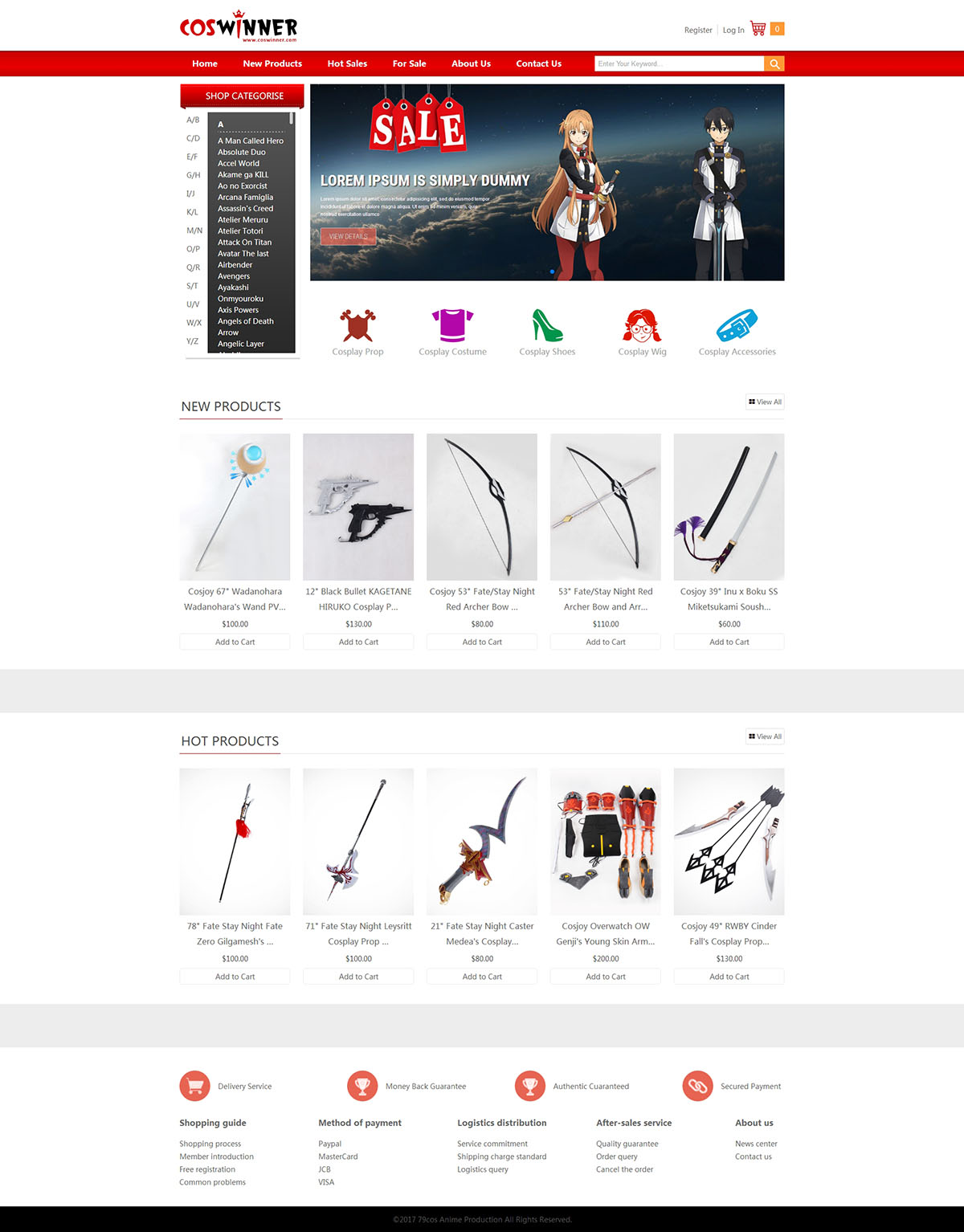 Coswinner/Coswinners is a factory direct shopping flatform, with best quality and best price. We will provide the most exquisite and original equipment and custom service for each cosplayer. For more information, please contact us with cosjo