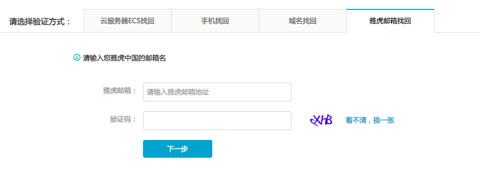 2. 目前支持四種方式找回登錄名,手機、云服務(wù)器ECS找回、域名、雅虎郵箱找回。