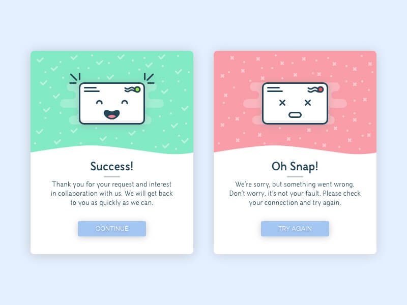 次要色、一般利用他來區(qū)別動作行為的顏色。舉個例子,在警告和成功所使用的顏色,通常使用綠色和紅色,如同下面的例子,你可以利用他們來設(shè)計(jì)從而將當(dāng)前狀態(tài)信息傳遞給用戶。