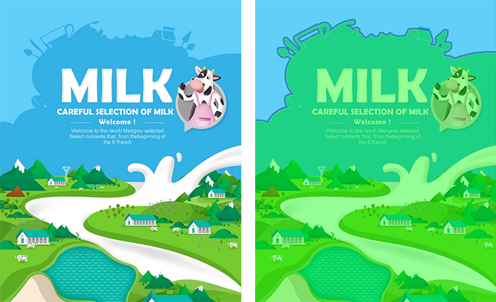 第二張圖中的不規(guī)則的面切割畫面讓頁(yè)面整體比較活潑可愛(ài),和畫面的品牌牛奶的氣質(zhì)非常吻合,這樣的不規(guī)則元素被穿插在整個(gè)畫面中。