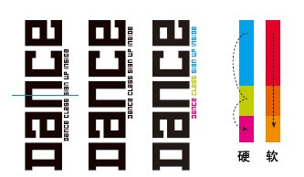 選擇恰當(dāng)?shù)淖煮w與圖片搭配:矩形的黑色背景與充滿直線條的Leco 1976字體互相呼應(yīng),同時(shí)與跳躍人物所呈現(xiàn)的充滿轉(zhuǎn)角的線條形成良好的搭配及互補(bǔ)。留意DANCE這幾個(gè)字是90度擺放的,字體顯得非常簡潔,象G、E、A等字母都幾乎有相同的結(jié)構(gòu)。