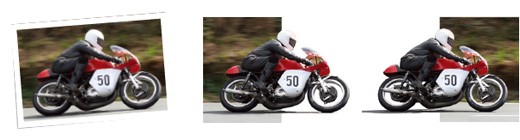 還要增加快感?將整個(gè)圖片下方的三方之一切掉(見下圖),現(xiàn)在給人一種輪子轉(zhuǎn)得更快的感覺,而摩托車象是跳到了前景中。從下方小圖可以看出,處理后的圖片增強(qiáng)了水平線的效果,由于水平線的方向與摩托車的方向是一致的,這使到速度感進(jìn)一步得到加強(qiáng)。