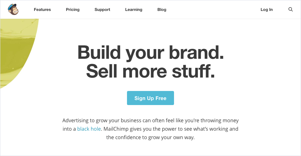 MailChimp在頁面底部最后重申,號召轉(zhuǎn)化行動: