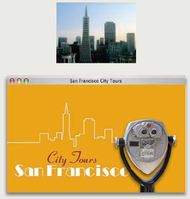 如果圖片的細(xì)節(jié)非常多,我們就要尋找其最能表達(dá)出其特征的輪廓線。上圖中,我們描繪出建筑群的某部分輪廓,這種線條式的設(shè)計(jì)其中一個(gè)特點(diǎn)就是可以讓一張并不清晰的圖片重新讓人獲得深刻印象。