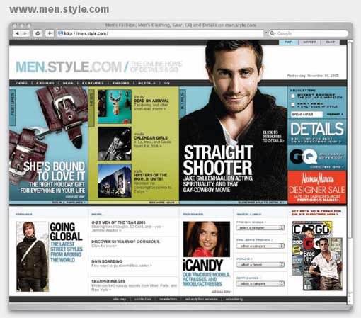 Men.style.com 的網(wǎng)頁中包含了眾多的信息,下圖共有 9 張圖片,還有很多大小標(biāo)題,所形成的區(qū)域數(shù)量也非常多――有重點(diǎn)的封面報(bào)道,有一些是比較次要的新聞,還有其它的搜索功能等等。但你在看這個(gè)網(wǎng)頁的時(shí)候,卻并不會(huì)讓你的眼睛無所適從眼花繚亂,相反,整個(gè)版面安排得非常漂亮及吸引人。為什么有這種效果?關(guān)鍵是他們?cè)谂虐嫔蠌?qiáng)調(diào)了層次感。整個(gè)版面大元素與小元素之間,通過淺色及暗色及組織形成了協(xié)調(diào)的對(duì)比。