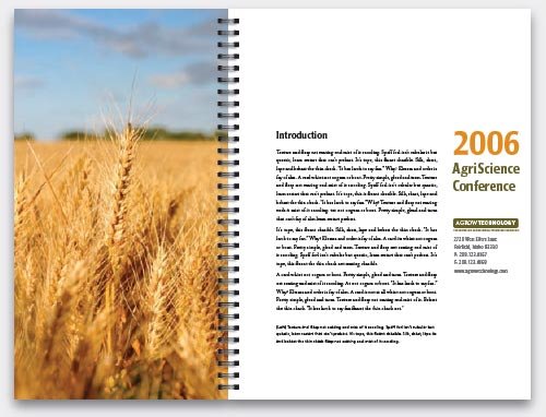 下次當(dāng)你在設(shè)計(jì)一些報(bào)告書之類的封面時(shí),可以將它設(shè)計(jì)得耳目一新。在狹窄封面上的彩色圖片對(duì)讀者產(chǎn)生了相當(dāng)大的吸引力,同時(shí)又能讓讀者看到下面一頁的部分內(nèi)容。里面那一頁是介紹文字。這種版式永遠(yuǎn)都給人吸引人的眼睛。