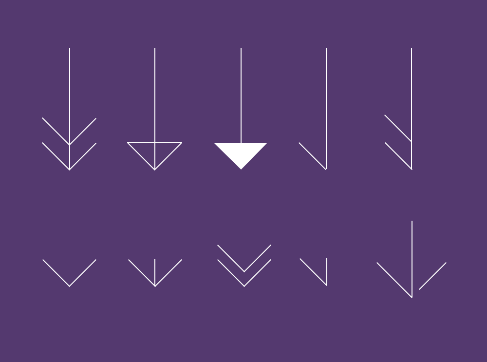 從這枚箭頭中,我們可以看到,通過線的視覺導(dǎo)向作用,最長的線引領(lǐng)你的視覺從左滑到右,而右端的箭頭上的小尖角的作用更指向了右方。利用這個原理,你就能創(chuàng)作出更多的其他樣式的箭頭來引領(lǐng)視線。