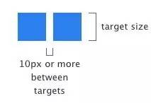 為了處理這些錯(cuò)誤并防止用戶誤操作,你必須確保按鈕有恰當(dāng)?shù)某叽绾涂臻g位置,這樣才更好地適合手機(jī)用戶操作。下圖是手機(jī)網(wǎng)頁(yè)中,按鈕間最佳的最小距離。