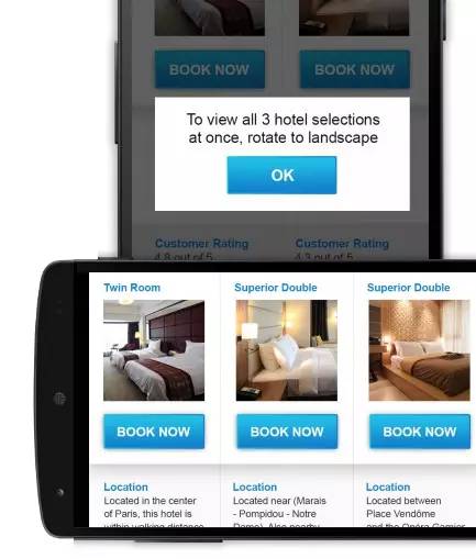 如果網(wǎng)頁(yè)有適配手機(jī)橫屏與豎屏的瀏覽,那么要提醒用戶切換成最佳的屏幕方向。因?yàn)槌悄闾崾居脩粢D(zhuǎn)屏幕(比如彈出一個(gè)會(huì)話框),不然他們只會(huì)照常瀏覽網(wǎng)頁(yè)。