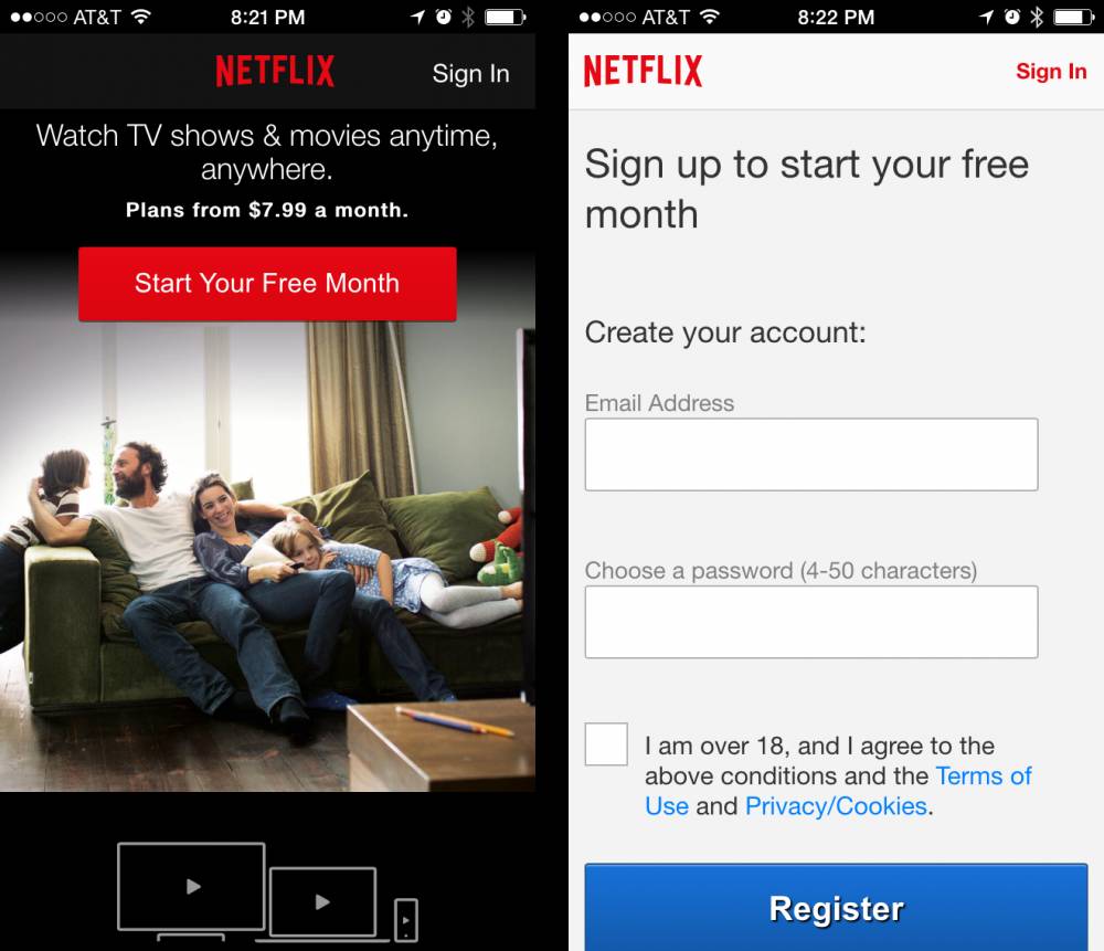 Netflix 提供了一個(gè)月的免費(fèi)使用,但用戶只有登錄賬戶才能瀏覽網(wǎng)頁(yè)內(nèi)容。