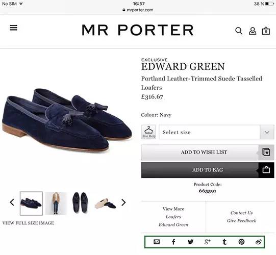 MR.PORTER 提供了一系列的分享選項(xiàng)