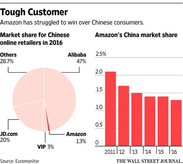 阿里、京東前后夾擊,亞馬遜在華快消品份額僅
